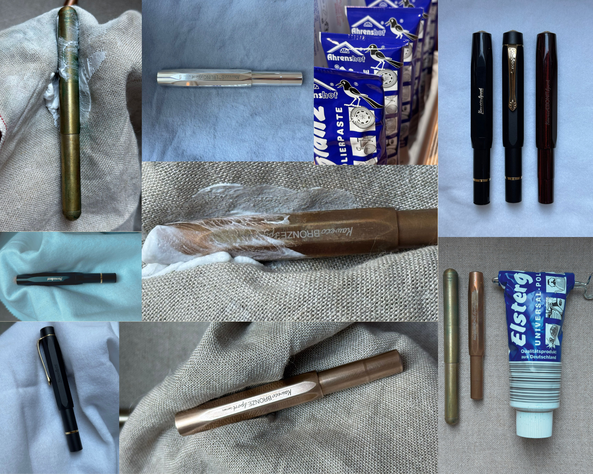 – Schreibgeräte aus Metall (Messing, Kupfer, Stahl, Aluminium, Bronze): Elster Glanz, Wenol oder gleichwertig feine Polierpasten